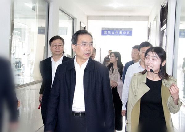 尹洪斌实地考察了医学护理专业实训中心、实训工厂,听取了学院发展情况的介绍,询问了校企合作有关情况,仔细了解了合作企业的生产和学生参与生产性实训的情况,并与学院师生进行了深入交流。
