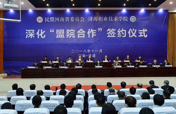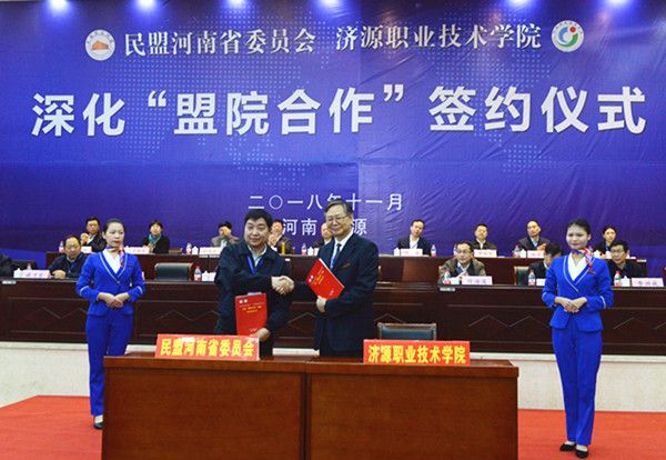 张战伟指出,深化“盟院合作”签约仪式既是济源多党合作事业发展史上的一件喜事,也是职业教育发展史上的一件大事。济源是一座工业城市,产业体系完备,技术装备水平较高,大力发展职业教育有着良好的基础和广阔的空间。近年来,济源大力实施职教攻坚计划、全民技能振兴工程和劳动力全员免费技能培训计划,持续加大财政投入,加快职教资源整合,组建济源职业教育集团,建成了职教园区,走出了自己的特色之路。职业教育已经成为济源一张靓丽的名片,多次受到教育部、省政府和省教育厅的表扬,被河南省确定为全省职业教育攻坚工作先进省辖市和职业教育综合改革实验区,济源职业技术学院被教育部确定为现代学徒制试点院校和国家级优质高职院校建设单位。职业教育的快速发展,为地方培养了大批实用型技术人才,在推进济源国家产城融合示范区建设的进程中发挥了重要作用。深化盟院合作,民盟省委不仅深化合作项目,还扩大了合作范围,组织郑州大学等六所实力雄厚的本科院校对职业技术学院进行帮扶。这些学校拥有一流的创新人才、优质的智力资源和先进的科技成果,重点对口帮扶不仅有利于提高职业技术学院的办学水平、助推地方经济建设,对推动全省职业教育改革发展也具有重要的现实意义。在今后的合作中,济源市将以最大的诚意、最优质的服务,持续推进合作协议的全面落实,努力把“盟院合作”打造成济源乃至全省高校开展多党合作的典范。他希望,民盟省委在盟院合作的基础上,提升合作层次,早日开展盟济合作,加快建设职教强市。