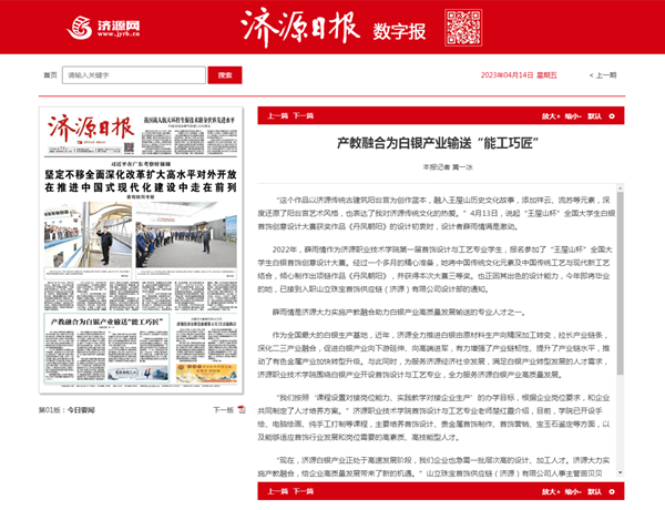 作为全国最大的白银生产基地,近年,济源全力推进白银由原材料生产向精深加工转变,拉长产业链条,深化二三产业融合,促进白银产业向下游延伸、向高端进军,有力增强了产业链韧性、提升了产业链水平,推动了有色金属产业加快转型升级。与此同时,为服务济源经济社会发展,满足白银产业转型发展的人才需求,济源职业技术学院围绕白银产业开设首饰设计与工艺专业,全力服务济源白银产业高质量发展。