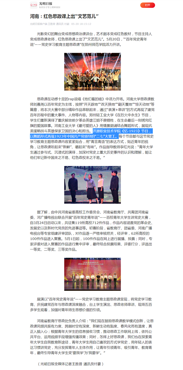 光影变幻的舞台变成思想政治课讲台,艺术剧本变成红色教材,节目主持人变成思政课老师,红色思政课上出了“文艺范儿”。5月20日,“‘百年党史青年说’——党史学习教育主题思政课”在郑州师范学院活力开讲。