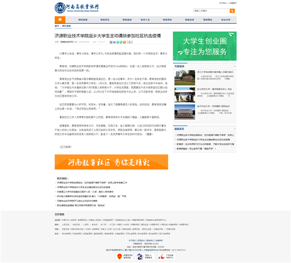 济源职业技术学院返乡大学生主动请战参加社区抗击疫情_高校速递 - 河南高校资讯网
