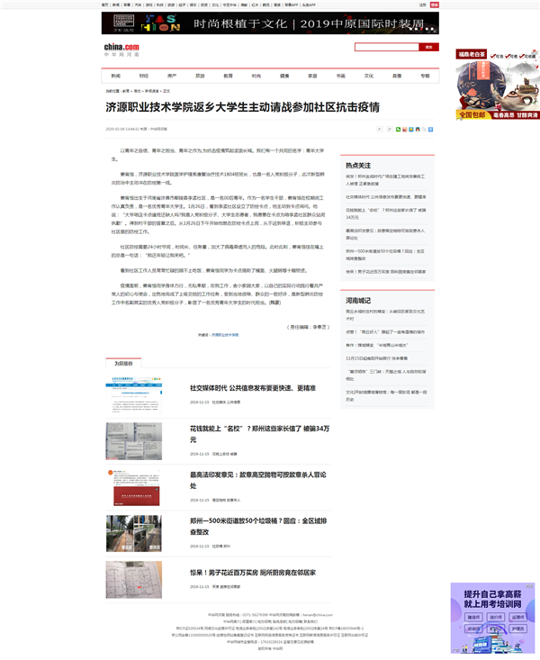 济源职业技术学院返乡大学生主动请战参加社区抗击疫情-中华网河南