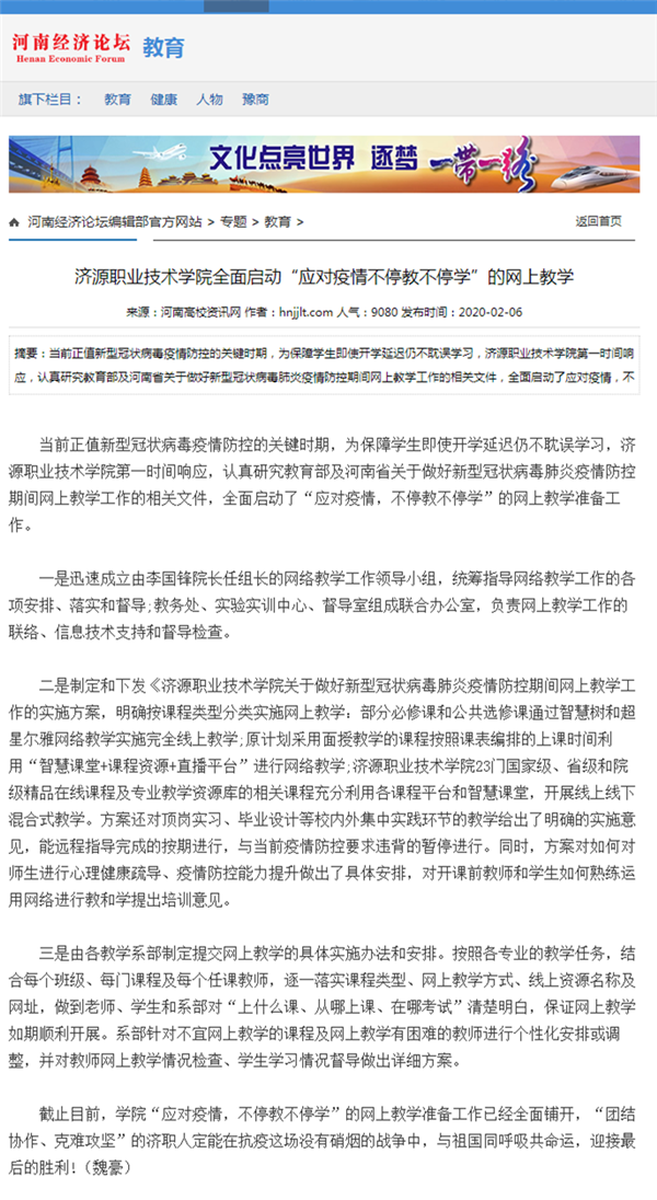 济源职业技术学院全面启动“应对疫情不停教不停学”的网上教学_河南经济论坛